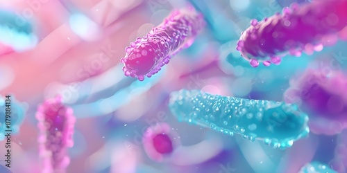 The Vital Role of Probiotics A Colorful Microscopic Perspective. Concept Probiotics, Gut Health, Microscopic View, Digestive System, Health Benefits