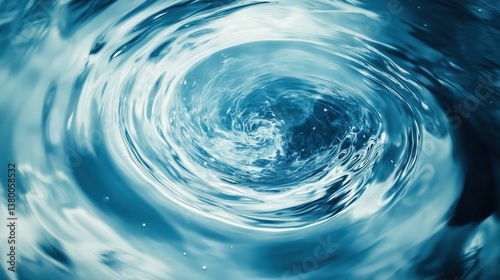 The water spirals gracefully, creating an entrancing vortex of motion that swirls in soothing blue hues, embodying both energy and calm.