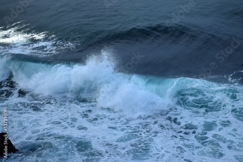 The waves crashing in the ocean, with a bluish tint at Drini Beach, Gunungkidul, Yogyakarta