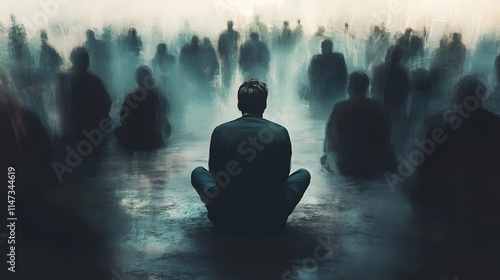 loneliness, anxiety, isolation, depression, disconnect, overwhelm, pressure, self-esteem, solitude, emotion, struggle, mental, vulnerability, insecurity, fear, mood, crowded, interaction, psychological, disorder, distant, face, figure, clutter, room, trepidation, society, aloof