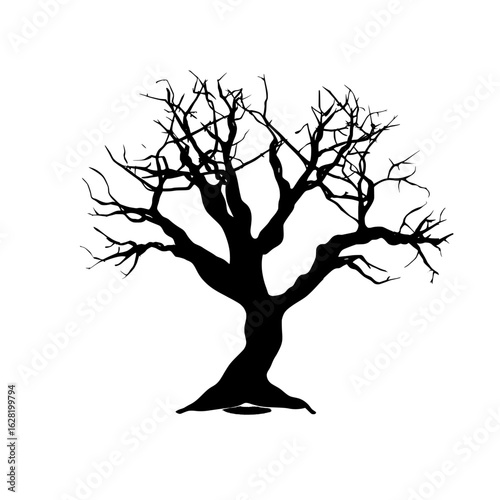 tree, silhouette, nature, tree branch, vector, forest, winter, plant, illustration, leaf, black, landscape, season, bare, single, design, tree branch, sky, oak, art, autumn, wood
