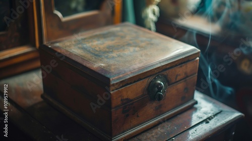 antique, old, vintage, brown, wood, ancient, retro, wooden, traditional, box, design, interior, chest, background, furniture, container, art, equipment, decor, metal, travel, style, treasure, object, history, room, table, smoke, architecture, drawer