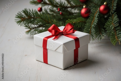 christmas, gift, box, decoration, tree, ribbon, holiday, present, bow, celebration, christmas, birthday, red, ornament, surprise, winter, isolated, green, tree branch, year, gift, object, season, new, package