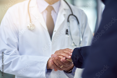 There is always hope. Cropped shot of a doctor holding a patients hand in comfort.