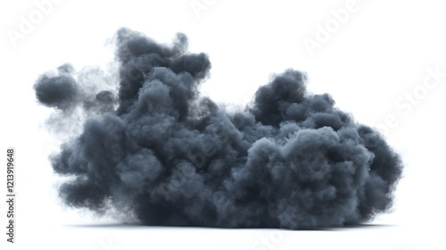 Thick black smoke isolated on white background with a soft gradient effect