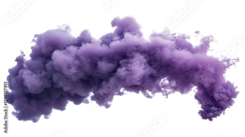 Thick purple smoke cloud on white isolated background creating a dramatic visual impact