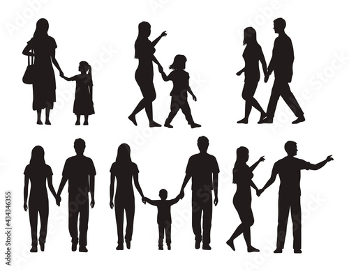 silhouette, family, people, mother, mother, son, daughter, father, boy, girl, father, children, baby, member, figure, 13, number, black, monochrome, form, happy, holiday, human, lifestyle, young, vector, illustration, design, set