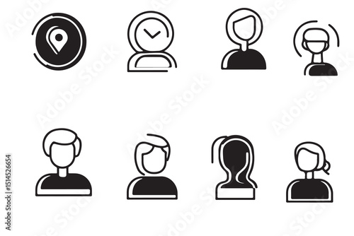 simple icons, web design, graphic design, people, location, profile, user, avatar, interface, technology, design element, graphic elements, illustration, silhouette, vector graphics