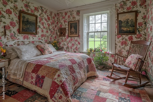 country, house, living, room, floral, wallpaper, handcraft, rocking, chair, cosy, serene, nature, view, vintage, interior, design, relaxation, comfort, homelike, countryside, plant, warm, colours, textile, art, painting, light, window, rug, soft, furnishing, rural, peaceful, charme, aesthetic, corner, quiet, retreat, inviting, space, natural, rustic, hand-made, seasonal, traditional, style, timeless, farmhouse
