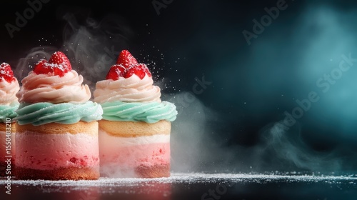 This delightful image features beautifully decorated cupcakes topped with vibrant whipped frosting and strawberries, embodying a sense of joy and celebration for any occasion.