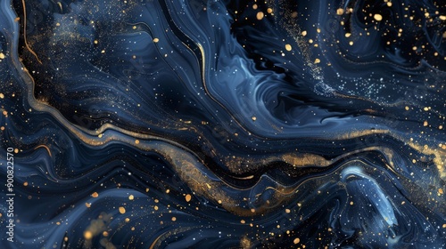 abstract, dark blue, gold, fluid, cosmic, flow, wave, swirling, depth, mystery, elegance, creativity, introspection, style, contemporary, painting, movement, splatter, introspective, artsy, sophisticated, fluidity, swirl, sparkle, pattern, rich, texture, visual, aura, design, artistic, night sky, stellar, imagination, space, luxury, intellectual, inspiration, universe, modern