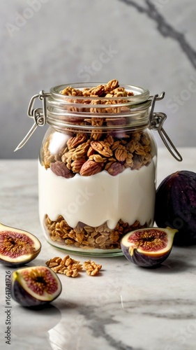 granola, jar, fruit, berry, nut, dairy, yogurt, greek, fruity, food, delicious, sweet, healthy, healthy snack, creamy, breakfast, dessert, fig, crunchy, layer, nourishment, wholesome, indulgent, alimentary, fresh, homemade, low-calorie, epicure, vegetarian, tasty, health food, kitchen, culinary
