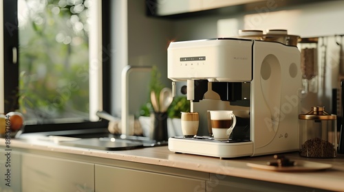 hot drink, machine, kitchen, modern, sleek, cosy, sunlight, counter, green plant, wood, warm, morning, light, decor, home, appliance, comfort, routine, contemporary, 21st century, stylish, brew, cappuccino, espresso, design, minimal, aesthetic, furniture, lifestyle, domestic, elegant, relaxation, breakfast, clean, organised, houseplant, interior, smooth, cafes
