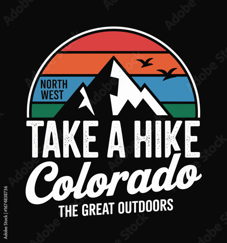 This image captures a stunning mountain landscape accompanied by a motivational phrase, encouraging outdoor activities like hiking in the beautiful state of Colorado.