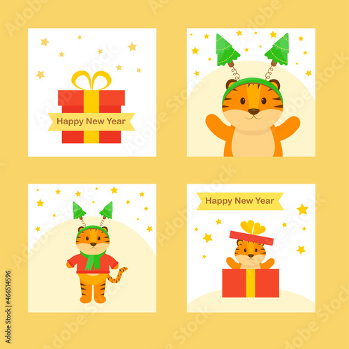 card, new year, postcard, tiger, collection, set, background, character, year, 2022, cartoon, celebration, christmas, christmas tree, cute, decoration, design, festive, fun, funny, gift, happy, holiday, illustration, kitten, cat, new, paper, season, text, winter, merry, present, december, tree, baby, animal, children