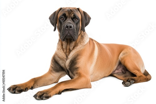 mastiff, dog, canino, breed, large, muscular, gentle, giant, loyal, companion, pet, domestic, animal, resting, lying, white, background, strong, calm, relaxed, affectionate, playful, furry, friends, household, guardian, intelligent, social, family, loving, friendly, droopy, face, watchdog, elegant, noble, sturdy, peaceful, nature, adorable, companionship, obedience, training, health, beauty, size, colours, fur, care