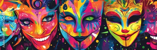 colours, face, paint, design, art, mask, bright, expression, festival, celebration, creativity, emotion, illustration, style, high-coloured, pattern, texture, make-up, culture, joy, performance, artist, canvas, aesthetic, beauty, variety, symbolism, portrait, originality, artistic, playful, unique, fantasy, imagination, boldness, detail, hue, colourful, surreal, inspiration, atmosphere, character, personality, visual, charme, animation, presentation