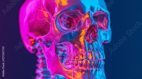 skull, human, anatomy, three-dimensional, colourful, art, digital, design, illustration, vibrant, modern, education, science, creative, graphic, render, visual, rendering, bright, tech, artistic, abstract, background, stylistic, aesthetic, conceptual, medicals, unique, fantasy, illumination, photogenic, stylised, image, detail, artwork, dynamic, inspiration, element, rendered, composition, magenta, cyan