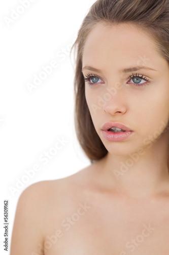 Thoughtful brunette model looking away