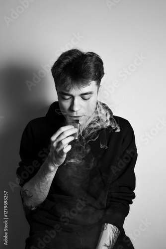 smoke, smoking, electronic, device, cigarette, guy, smoker, nicotine, mouth, pensive, stylish, thoughtful, male, nose, vapour, teenage, trendy, black-and-white, model, side, copy space, person, looking, grey, eyes closed, contemplative, isolated, man, portrait, white, young, modern, copy, adult, hand, healthy, black, hoodie, cloud, concept, fashion, creative, wall, background, emanating, thoughtfully