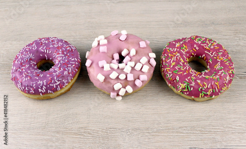 background, baked, bakery, beauty, bright, cake, calorie, candy, celebration, circle, closeup, colours, colourful, copy space, cream, dessert, donut, dough, donut, eat, food, fritter, glaze, glazed, hole, icing, marshmallow, pastry, pattern, pink, round, snack, sprinkle, sugar, sweet, sweet food, tasty, texture, top, view, white, wooden