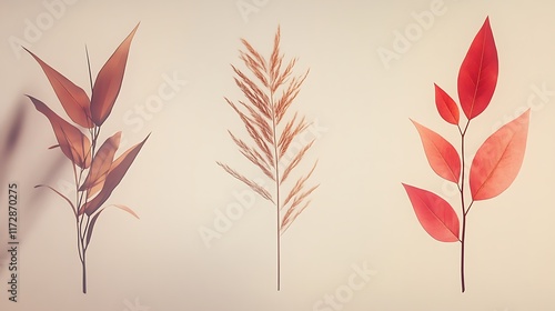 autumn, fall, leaf, tree branch, stem, plant, nature, foliage, red, orange, brown, beige, background, design, element, texture, pattern, seasonal, colours, vibrant, beauty, elegant, botanical, illustration, graphic, image, photo, picture, art, aesthetic, decoration, minimal, simple, style, october, november, september, dry, delicate, twig, flora, germinating