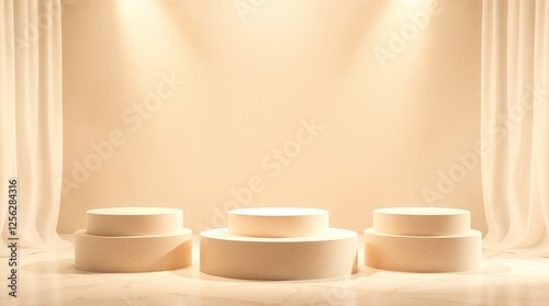 beige, cosmetic, background, show, scene, showcase, stage, minimal, pedestal, three, platform, product, pastel, light, display, luxury, copy space, presentation