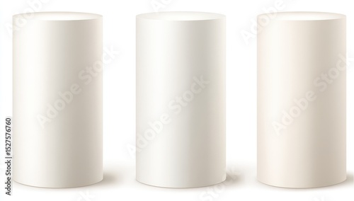 cylinder, dais, blank, white, beige, light, three, empty, display, racked, product, graphic, illustration, design, advertising, promotion, retail, presentation, showcase, modern, abstract, geometric, shape, round, vertical, elevated, staging, exhibition, platform, architecture, three-dimensional, isolated, background, vector, digital, image