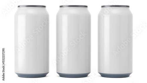 Three blank white aluminum cans isolated on white background mockup for branding design