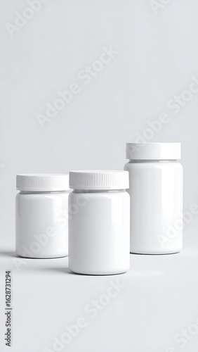 jar, container, bottle, cardboard box, product, design, white, blank, empty, medicine, supplement, cosmetic, health, beauty, pharmaceutical, illustration, branding, studio, display, advertising, promotion, three, size, modern