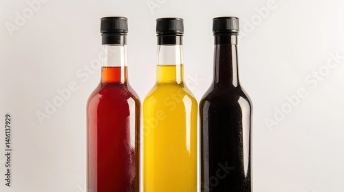 bottle, liquid, glasses, container, oil, vinegar, red, yellow, black, dark, bright, colours, drink, beverage, food, culinary, ingredient, kitchen, cooking, product, cardboard box, design, studio, photo, still, life, clean, minimal, simple, white, background, clear, transparent, cap, liqueur, sauce, dressing, condiment, wellness, health
