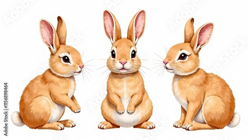 Three bunnies on a white background.