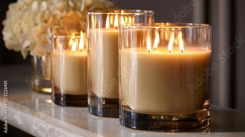 candle, glasses, holder, flames, warm, light, beige, wax, three, luxury, elegant, smooth, diffused, illuminated, interior, decor, closeup, soft, modern, beautiful, home, relaxing, ambience, scented, natural, warmth, cosy, decorating, lifestyle, gentle, decorative, fragrance, style, candlelight, illumination, simple, composition, lighting, glow, subtile, design, detail, object