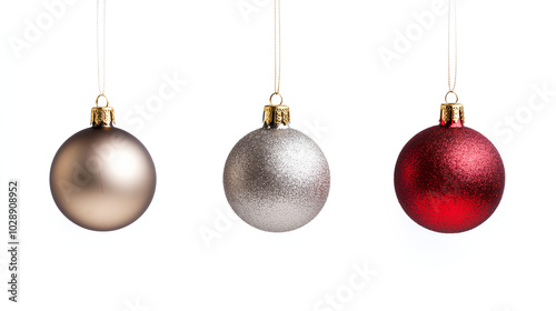 christmas, ornament, ornament, bauble, bauble, red, gold, silver, brown, hanging, string, string, festive, decoration, decoration, holiday, holiday, celebration, celebration, december, winter, sparkle, glistering, shiny, round, circle, white, background, isolated, traditional, classic, elegant, simple, minimalist