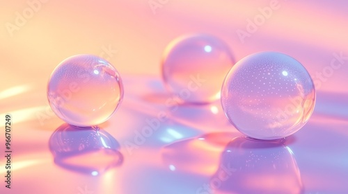 Three Clear Spheres Reflecting Light on a Pink and Purple Background