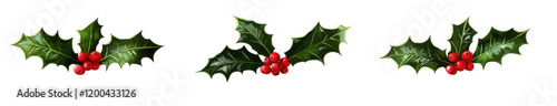 three clusters of holly leaves adorned with bright red berries. commonly associated with winter and festive decorations the design is simple yet elegant. making it suitable for holiday-themed graphics