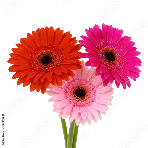 gerbera, daisy, flower, bloom, blossom, floral, plant, colours, vibrant, orange, pink, magenta, light, stem, bunch, bouquet, nature, beauty, flora, image, three, full, with, green, open, displaying, their, bright
