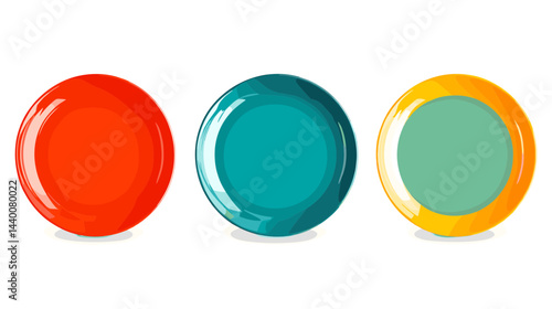 Three Colorful Round Plates on White Background
