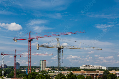 architecture, blue, build, building, business, city, commercial, concrete, construction, crane, crane, development, engineering, equipment, high, industrial, industry, large, metal, new, project, red, site, sky, steel, structure, tall, urban, work, yellow
