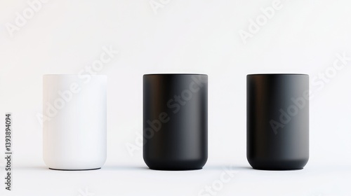 cylinder, container, cup, black, white, modern, minimalist, design, geometric, simple, empty, product, display, industrial, cardboard box, graphic, three-dimensional, render, illustration, branding, promotion, presentation, advertising, catalog, texture, matte, smooth, solid, colours, contrast, vertical, set, object, home, office, store, product, contemporary, shape, retail, promotional, blank