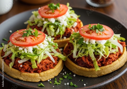 Three delicious sopes topped with shredded lettuce tomato and cheese