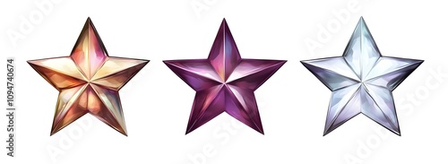 Three Distinct Crystal Stars in White and Vibrant Colors Showcasing Unique Designs and Textures, Ideal for Decorative or Artistic Purposes in Various Creative Projects
