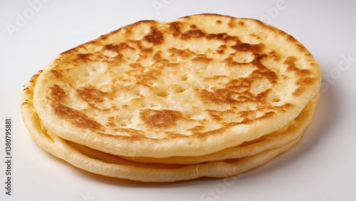 Three flatbreads placed on a clean white surface, ideal for food styling and photography