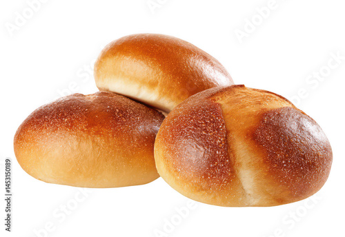 three fresh sweet bread rolls isolated on a white background, png, transparent