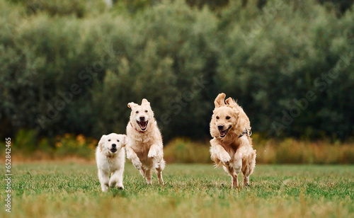 three, gold, retriever, running, outdoors, green, field, active, puppy, beautiful, cute, little, dog, breed, animal, ground, outside, walk, young, together, grass, background, nature, domestic, eltern, wellness, well-being, cheerful, weekend, joy, happiness, calm, tranquil, summer, season, fur, leisure, lovely, pretty, face, paw, nose, no people, colourful, care, rural, labrador, yellow, pet