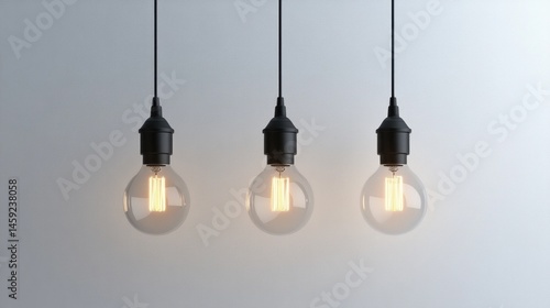 Three hanging lamps with vintage style filament bulbs providing warm and cozy lighting in a modern minimalist interior design creating a stylish and inviting ambiance