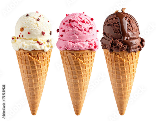 ice cream, cone, dessert, summer, treat, sweet, creamy, vanilla, chocolate, strawberry, scoop, favor, delicious, waffle, cold, snack, refreshing, pink, brown, white, tasty, fun, texture, crunchy, food, isolated, black, delight, indulgence, closeup, epicure, appetising, chilled, honed, fresh, artisanal, handcraft, deliciously, smooth, vibrant, assorted, trio, cone, different, confection