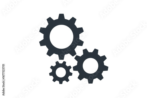 Three interlocking dark-grey gears on a transparent background; a symbol of teamwork and mechanics. background removed