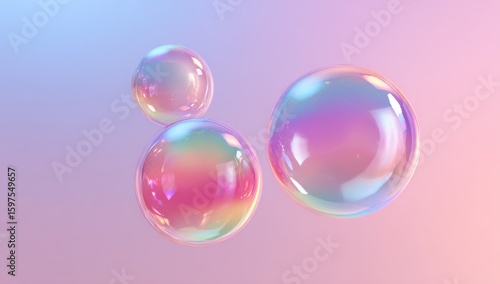 Three iridescent spheres, floating on a pastel gradient background