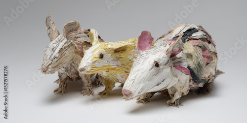sustainability, recycling, restoration, animal, art, sculpture, creative, hand-made, recycled, craft, colourful, texture, design, artistic, environmentally friendly, sustainable, decorative, unique, imaginative, detailed, intricate, mouse, rodent, yellow, white, brown, pink, grey, display, exhibit, gallery, contemporary, modern, innovative, environmental, resourceful, craftsmanship, tactile, whimsical, playful, wild animal
